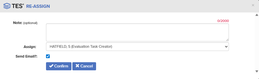 - Select the person to route the evaluation task back to from the Assign drop-down.