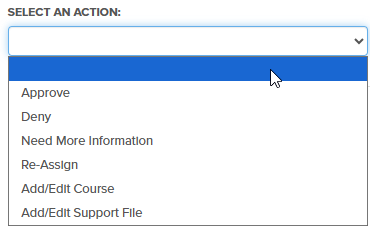 - To make an evaluation decision, open the SELECT AN ACTION drop-down.